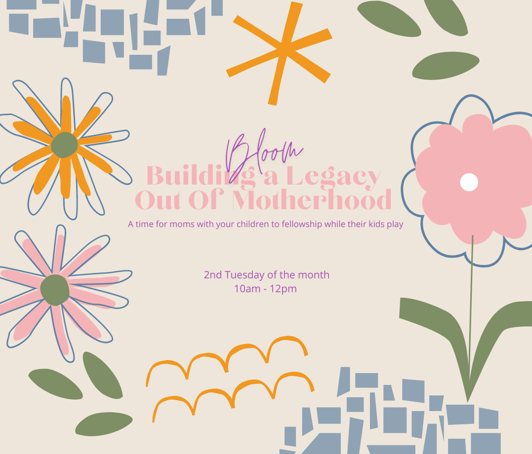 Moms with young children: Bloom is a great opportunity to fellowship and build friendships with other moms while the kids play. Every 2nd Tuesday of each month in the toddler room.