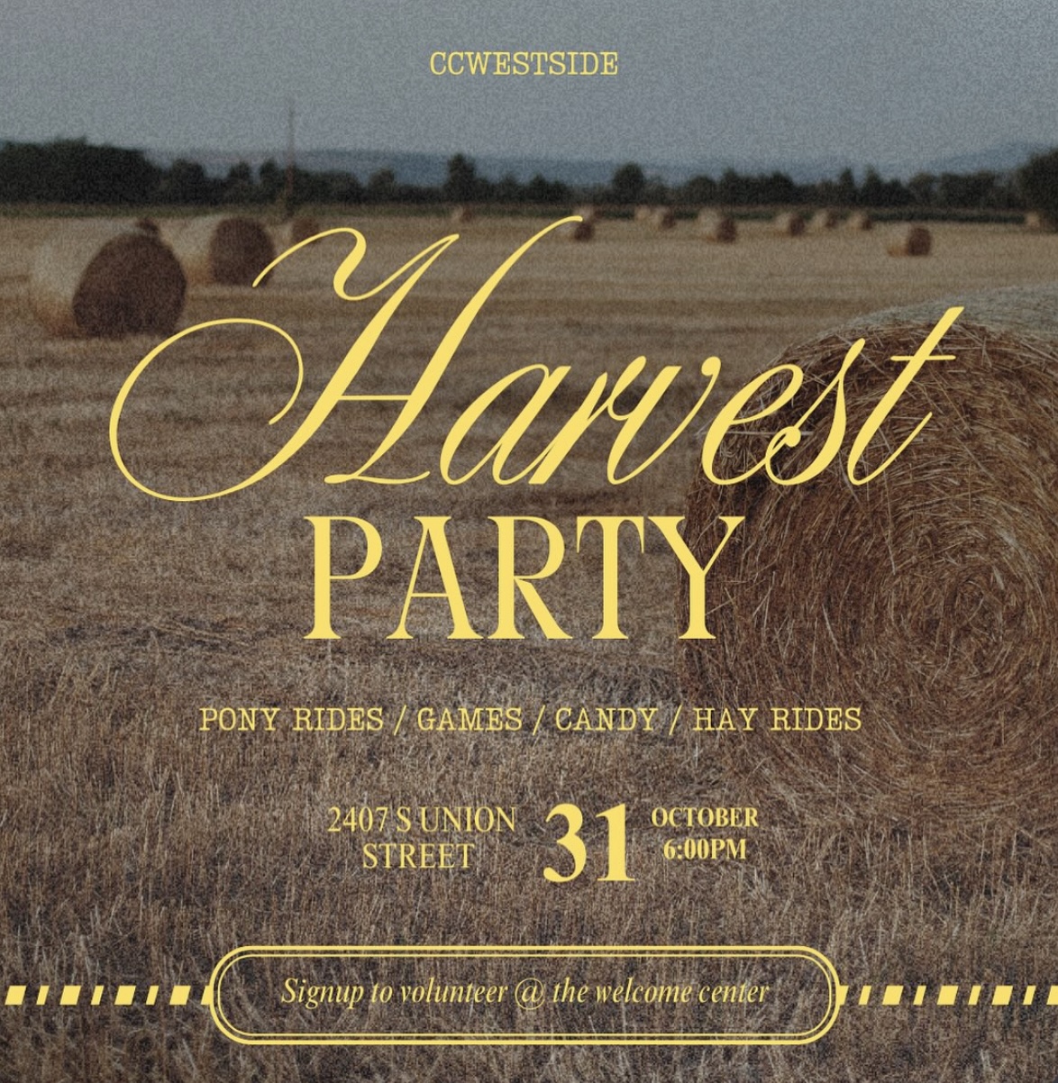 Join us for our annual Harvest Party at 6:00pm for candy, games and fun! Eat Greek food truck will be on site with food to purchase.